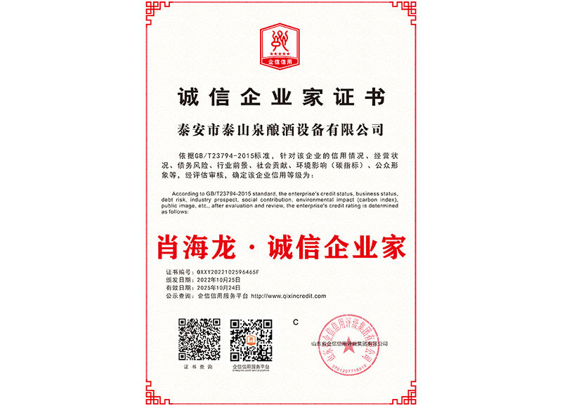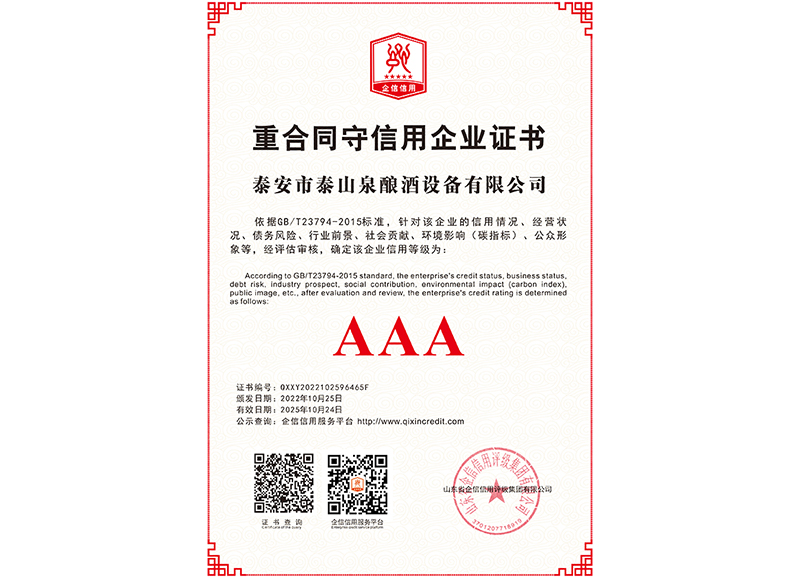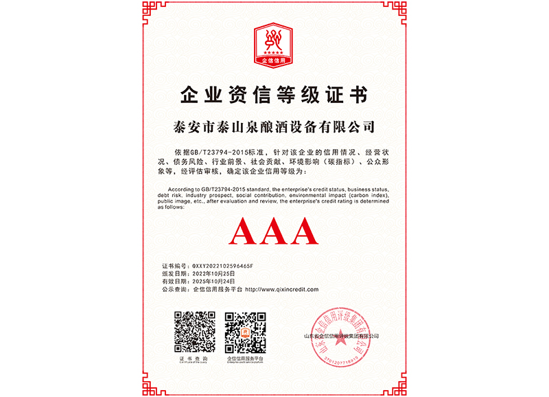 泰安市泰山泉釀酒設(shè)備有限公司,是一家專業(yè)從事釀酒設(shè)備機(jī)械化研發(fā)并集技術(shù)咨詢,工程設(shè)計,制造安裝,人員培訓(xùn)及售后服務(wù)為一體的綜合性企業(yè),本公司主要產(chǎn)品為:大曲清香、小曲清香、大曲醬香、大曲濃香等香型白酒機(jī)械化設(shè)備?! ”竟九c中國科學(xué)院自動化研究所簽訂技術(shù)服務(wù)合同,引進(jìn)先進(jìn)技術(shù),研究生產(chǎn)全自動化機(jī)械釀酒設(shè)備,由中國科學(xué)自動化研究所的技術(shù)支持,打造最先進(jìn)的生產(chǎn)釀酒設(shè)備,公司有信心打造全國最先進(jìn)白酒...